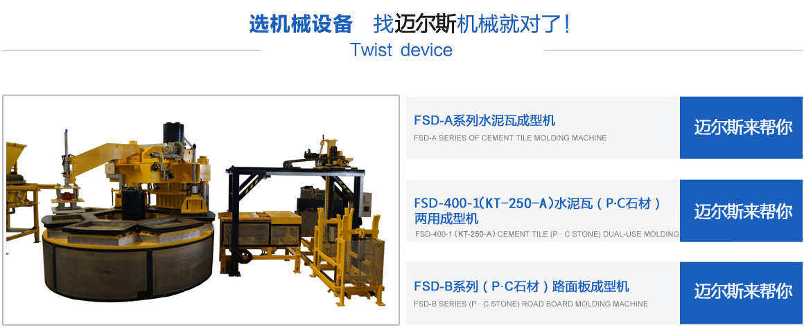 常熟市邁爾斯機(jī)械有限公司是一家集研發(fā)、生產(chǎn)、銷售于一體的建材機(jī)械高科技企業(yè),其前身為2011年注冊(cè)創(chuàng)辦的“常熟市虞山鎮(zhèn)豐順達(dá)機(jī)械配件廠”,經(jīng)過多年的努力,于2017年注冊(cè)成立“常熟市邁爾斯機(jī)械有限公司”,專業(yè)生產(chǎn)模壓水泥彩瓦機(jī)、P.C石材機(jī)、轉(zhuǎn)盤式成型機(jī)、彩色路面磚機(jī)等綠色建材設(shè)備。公司以市場為龍頭,以技術(shù)為導(dǎo)向,開發(fā)了系列化、標(biāo)準(zhǔn)化的適銷對(duì)路的機(jī)械產(chǎn)品,并且注冊(cè)了多項(xiàng)國家專利技術(shù),銷售范圍覆蓋全國,并且出口越南、老撾等東南亞和其它國家。